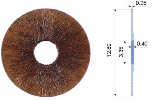产品特点:前表面通过色素封装技术自然着色,模仿天然虹膜起伏状;后表面为全黑色层,可最大限度减少光线进入眼后段;支持术中环切调整尺寸,适配不同解剖结构;不透光外周有效阻挡光线,改善视觉质量。
