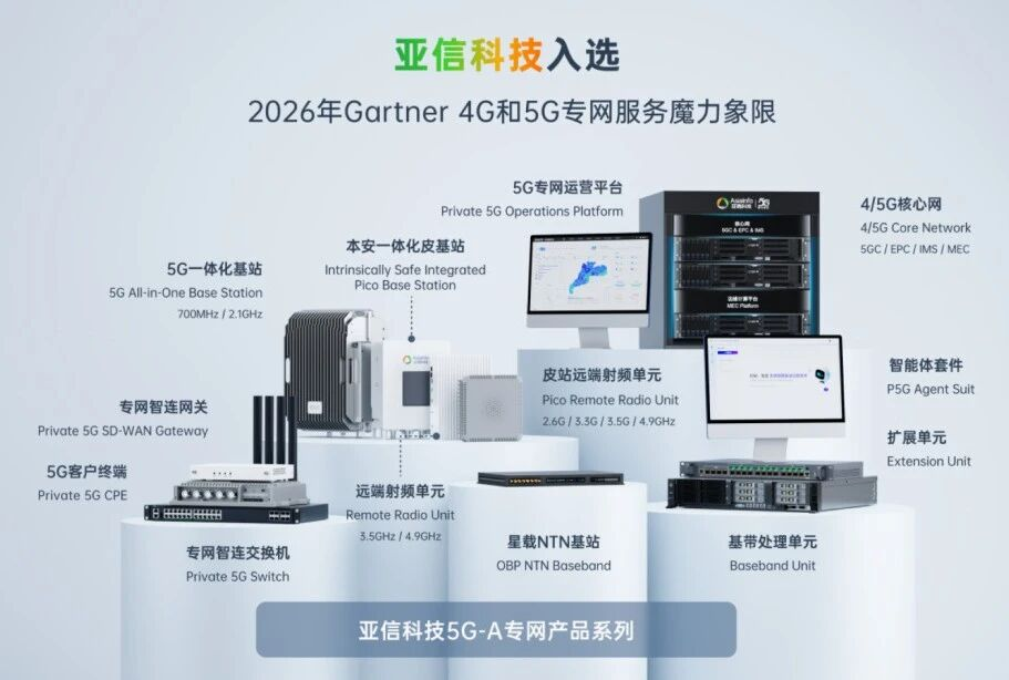 日前,国际ICT研究与咨询机构Gartner发布2026年全球“4G和5G专网服务魔力象限”(Magic Quadrant for 4G and 5G Private Mobile Network Services)报告。亚信科技凭借性能优异的5G专网产品,以及在通信、核电、新能源、矿山等领域的优秀实践,首次跻身全球核心供应商阵营,并入选Niche Players象限。这不仅是对亚信科技完善的5G专网端到端交付能力的认可,更是对亚信科技Private 5G-A、AI-RAN等方案创新和产品研发、服务水平的充分肯定。