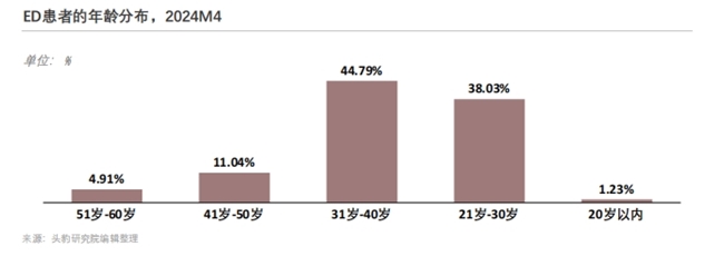 据中华医学会男科学分会《中国男性勃起功能障碍诊疗指南(2024版)》流行病学数据,我国18岁以上成年男性ED总体患病率达26.1%,患病年龄集中在30-50岁,其中40岁以上人群患病率高达40.2%,同时患病年轻化趋势显著,40岁以下ED患者占比已达37%。随着国民男性健康意识觉醒、疾病认知祛魅,ED规范用药需求持续攀升,成为医药健康领域确定性极强的刚需赛道。