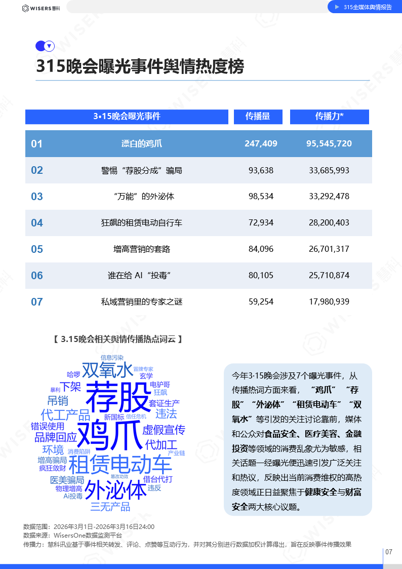 (原标题:慧科讯业《2026年315洞察报告》:“漂白的鸡爪”登顶舆情热度榜首)
