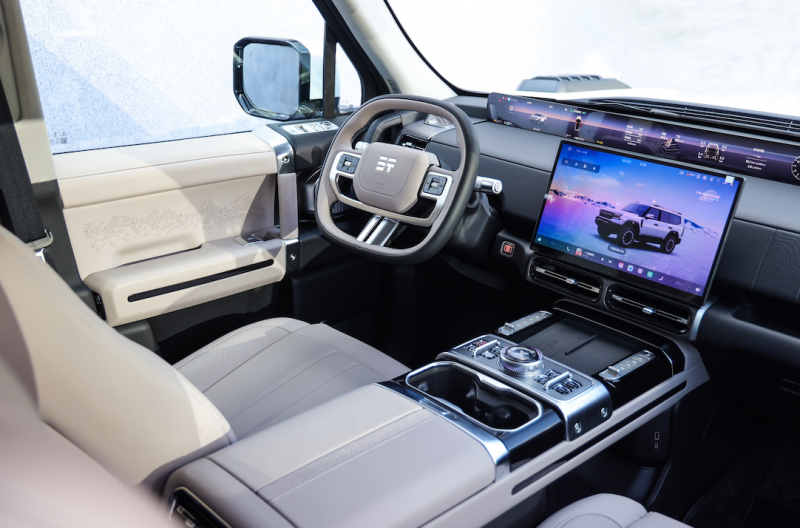 座舱与全域保障方面,纵横G700顶火鸣镝版同样做到极致。车内搭载极智四联屏,全车采用Nappa真皮座椅,主副驾与第二排座椅均支持加热、通风、按摩功能,配合高规格音响系统,将旗舰级豪华质感融入每一段越野旅途,即便长时间穿行戈壁、高原,也能始终保持舒适惬意的驾乘状态。同时,苍穹互联卫星通讯系统实现全域无盲区通信,外挂制氧系统为高原、无人区等极端场景提供生命保障,即便深入荒野极地,也能时刻守护通信畅通与驾乘者的身体状态稳定。