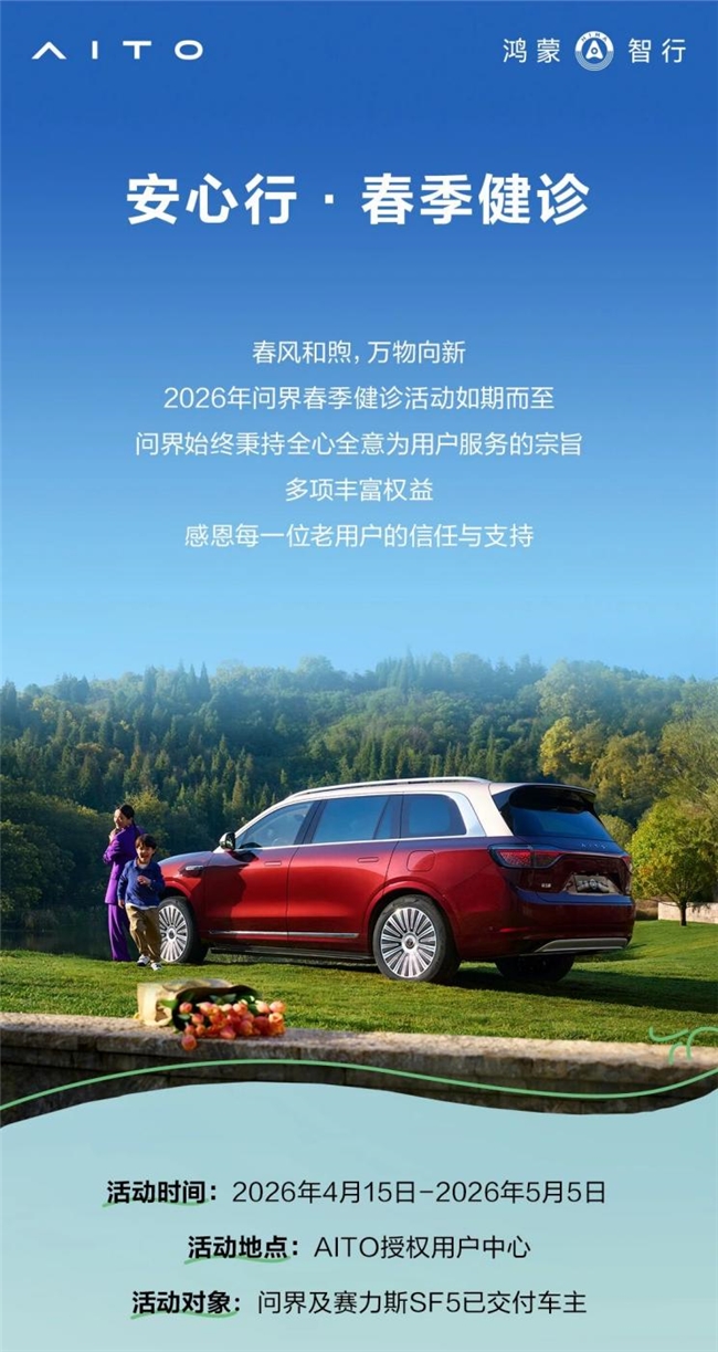(原标题:问界M6订单破10万 春季健诊开启“用车无忧”新体验)