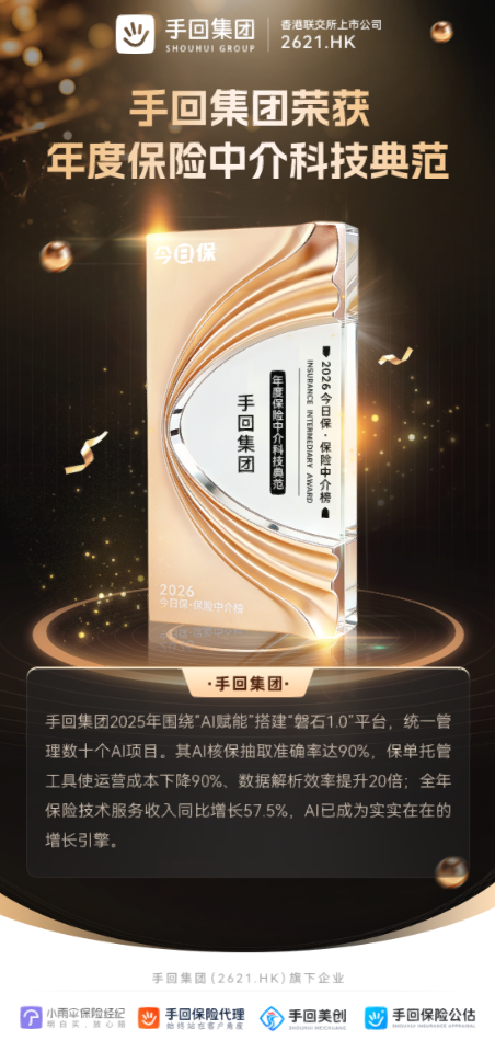 (原标题:手回集团荣膺年度保险中介科技典范:以AI基础设施重塑保险服务全链路)