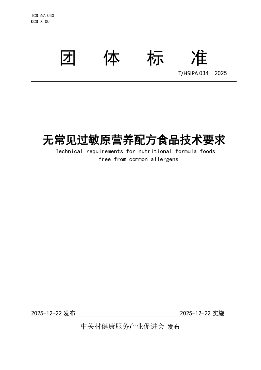 图为:《无常见过敏原营养食品配方技术要求》团体标准正式发布实施