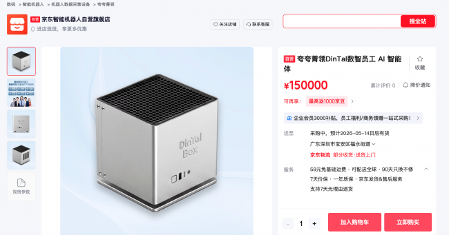 夸夸菁领已将DinTal数智员工一体机上线京东,这也改变了数智员工的销售、交付逻辑。真正将开箱即用、快速部署的目标做到了实处,用户可以像买普通3C产品一样将数智员工请到公司。