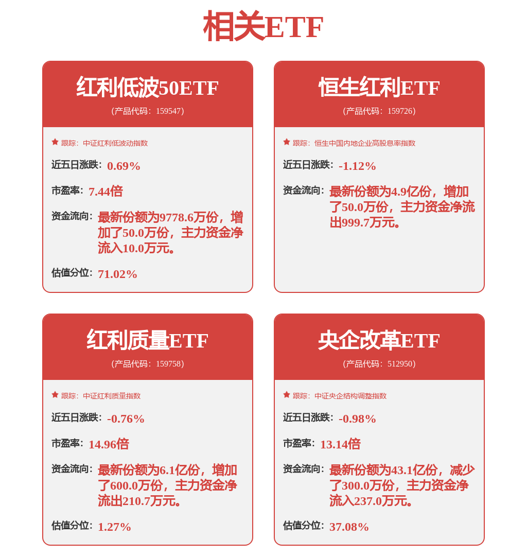 杨斯琪在担任华夏中证红利低波动ETF(159547)基金经理的任职期间累计任职回报4.89%,平均年化收益率为5.98%。期间重仓股调仓次数共有8次,其中盈利次数为6次,胜率为75.0%。