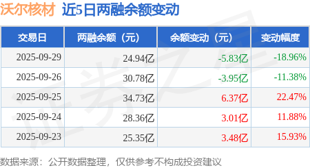 证券之星消息,9月29日,沃尔核材(002130)融资买入8.35亿元,融资偿还14.16亿元,融资净卖出5.81亿元,融资余额24.6亿元,近20个交易日中有11个交易日出现融资净买入。