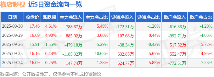 9月30日的资金流向数据方面,主力资金净流入788.67万元,占总成交额5.49%,游资资金净流出172.31万元,占总成交额1.2%,散户资金净流出616.36万元,占总成交额4.29%。