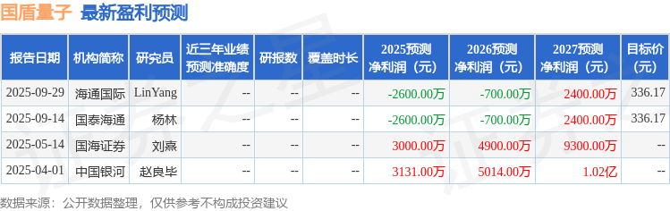 国金证券股份有限公司夏昌盛,张真桢,杨佳妮近期对国盾量子进行研究并发布了研究报告《国之重盾,量创智子》,首次覆盖国盾量子给予买入评级,目标价550.41元。