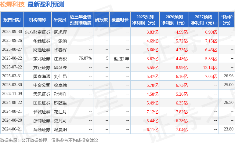 证券之星数据中心根据近三年发布的研报数据计算,东北证券庄嘉骏研究员团队对该股研究较为深入,近三年预测准确度均值为76.87%,其预测2025年度归属净利润为盈利3.67亿,根据现价换算的预测PE为36.45。