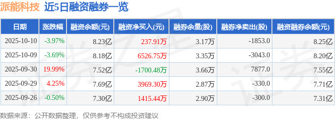 派能科技融资融券信息显示,融资方面,当日融资买入1.22亿元,融资偿还1.19亿元,融资净买入237.91万元。融券方面,融券卖出3400.0股,融券偿还5253.0股,融券余量3.17万股,融券余额217.38万元。融资融券余额8.25亿元。