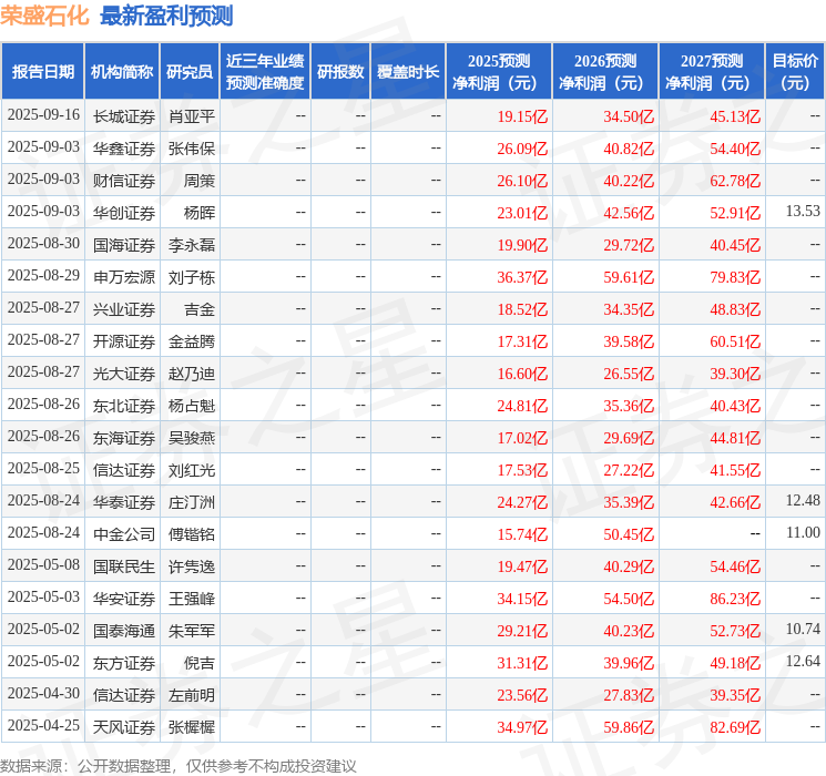 东吴证券股份有限公司陈淑娴,周少玟近期对荣盛石化进行研究并发布了研究报告《石化化工行业稳增长方案推出,民营炼化龙头有望受益》,给予荣盛石化买入评级。