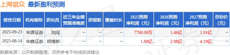 最新盈利预测明细如下: