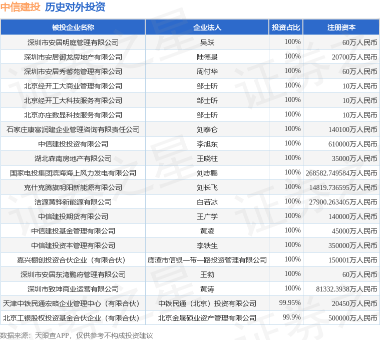 证券之星消息,根据天眼查APP显示,中信建投(601066.SH)新增一起对外投资事件,被投资公司为深圳市安居明庭管理有限公司,法定代表人吴跃,投资占比为100%。该公司从事房地产业,注册资本为60万人民币。目前,中信建投共存在对外投资98项,投资占比前20的项目见下表: