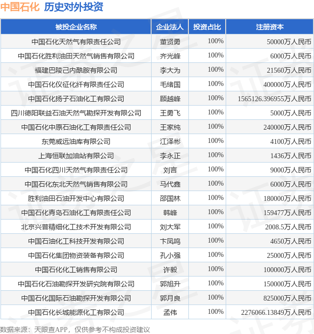 证券之星消息,根据天眼查APP显示,中国石化(600028.SH)新增一起对外投资事件,被投资公司为宁波市星海码头有限公司,法定代表人周芒,投资占比为34%。该公司从事水上运输业,注册资本为16820.1万人民币。目前,中国石化共存在对外投资192项,投资占比前20的项目见下表: