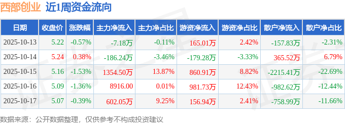 资金流向数据方面,本周西部创业主力资金合计净流入1764.03万元,游资资金合计净流入1985.29万元,散户资金合计净流出3749.32万元。本周资金流向一览见下表: