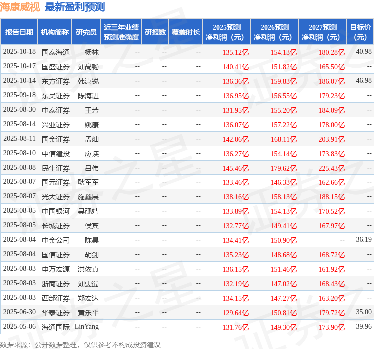 最新盈利预测明细如下:
