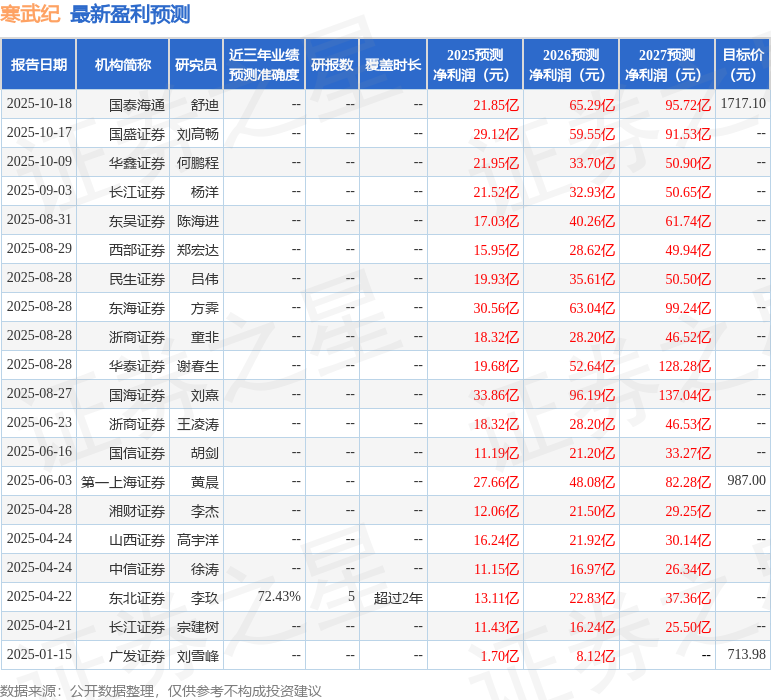 证券之星数据中心根据近三年发布的研报数据计算,东北证券李玖研究员团队对该股研究较为深入,近三年预测准确度均值为72.43%,其预测2025年度归属净利润为盈利13.11亿,根据现价换算的预测PE为397.35。