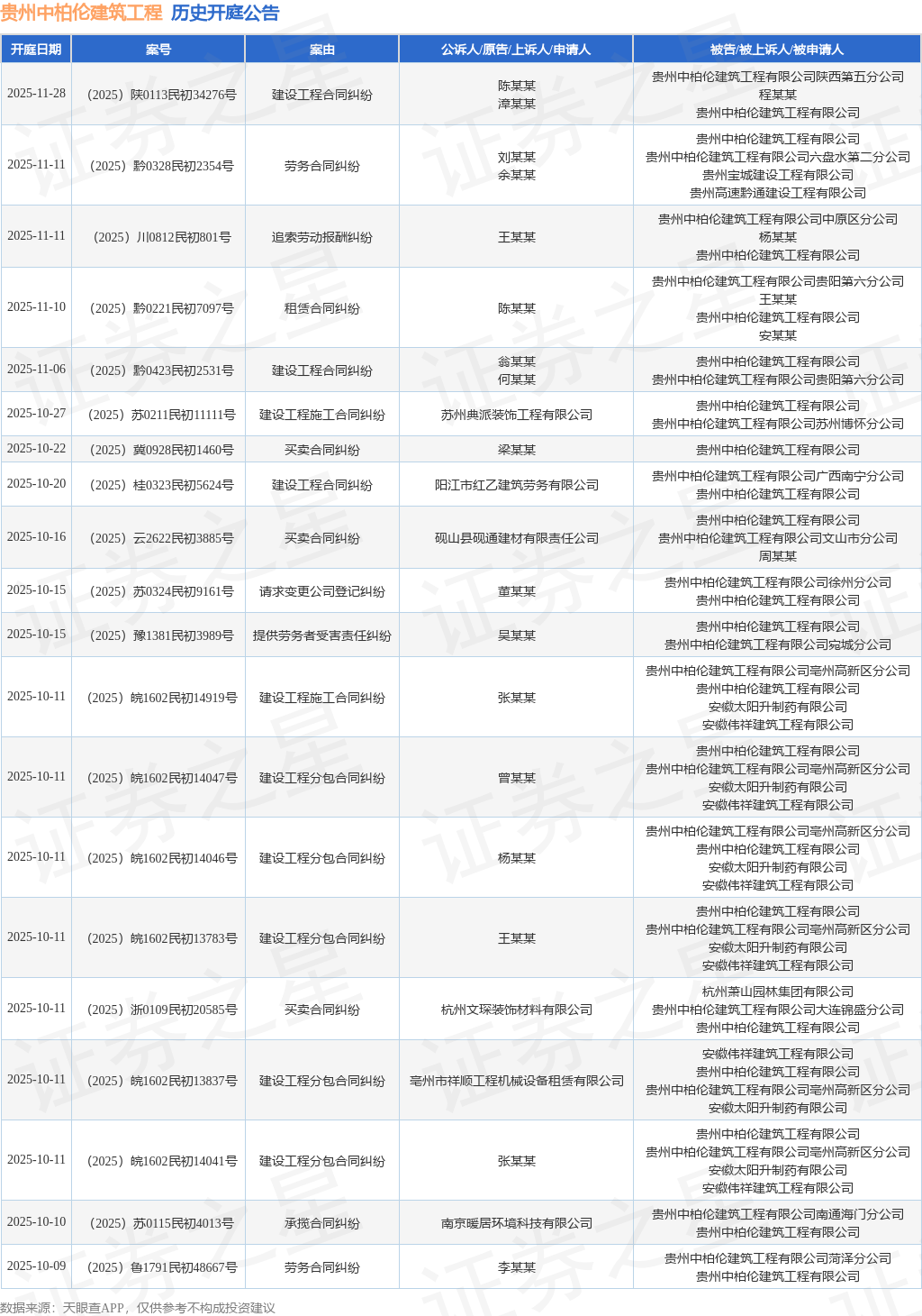 证券之星消息,根据天眼查APP显示,近日公布了一则贵州中柏伦建筑工程有限公司作为被告/被上诉人的开庭公告,详细内容如下: