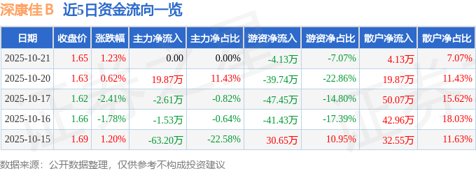 10月21日的资金流向数据方面,无主力资金净流入,游资资金净流出4.13万元,占总成交额7.07%,散户资金净流入4.13万元,占总成交额7.07%。