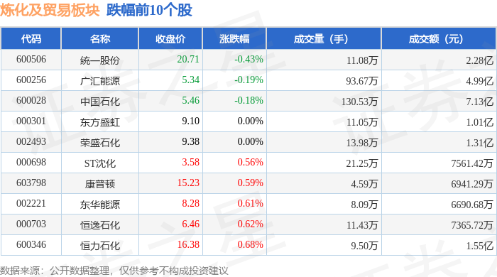 证券之星消息,10月21日炼化及贸易板块较上一交易日上涨1.07%,茂化实华领涨。当日上证指数报收于3916.33,上涨1.36%。深证成指报收于13077.32,上涨2.06%。炼化及贸易板块个股涨跌见下表: