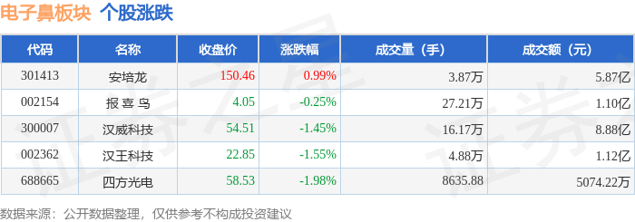 证券之星消息,10月22日电子鼻板块较上一交易日下跌0.87%,四方光电领跌。当日上证指数报收于3913.76,下跌0.07%。深证成指报收于12996.61,下跌0.62%。电子鼻板块个股涨跌见下表: