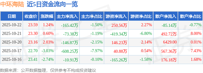 证券之星消息,截至2025年10月22日收盘,中环海陆(301040)报收于23.59元,上涨1.24%,换手率4.94%,成交量4.66万手,成交额1.11亿元。