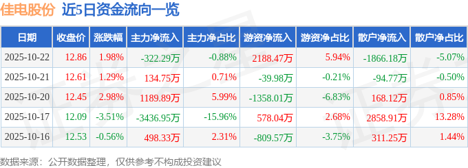 10月22日的资金流向数据方面,主力资金净流出322.29万元,占总成交额0.88%,游资资金净流入2188.47万元,占总成交额5.94%,散户资金净流出1866.18万元,占总成交额5.07%。