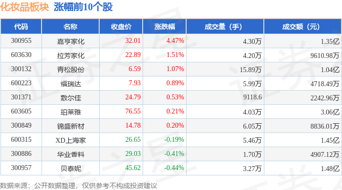 证券之星消息,10月23日化妆品板块较上一交易日下跌0.14%,青岛金王领跌。当日上证指数报收于3922.41,上涨0.22%。深证成指报收于13025.45,上涨0.22%。化妆品板块个股涨跌见下表: