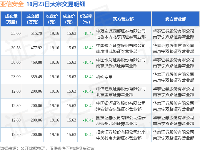 证券之星消息,10月23日亚信安全发生大宗交易,交易数据如下: