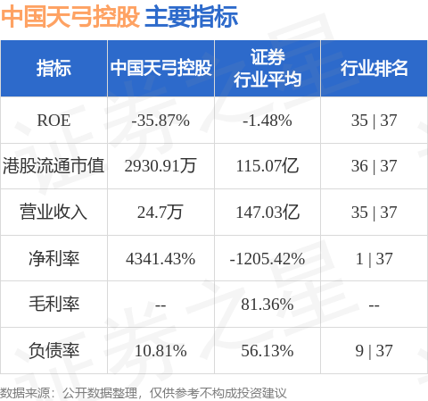 中国天弓控股港股市值2930.91万港元,在证券行业中排名第36。主要指标见下表: