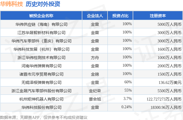 证券之星消息,根据天眼查APP显示,华纬科技(001380.SZ)新增一起对外投资事件,被投资公司为杭州炬坤机器人有限公司,法定代表人董会旭,投资占比为3.7%。该公司从事研究和试验发展,注册资本为122.727273万人民币。目前,华纬科技共存在对外投资11项,详见下表: