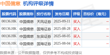投行对该股的评级以买入为主,近90天内共有4家投行给出买入评级。天风证券最新一份研报给予中国儒意买入评级。