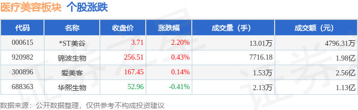 从资金流向上来看,当日医疗美容板块主力资金净流出3799.16万元,游资资金净流入229.47万元,散户资金净流入3569.68万元。医疗美容板块个股资金流向见下表:
