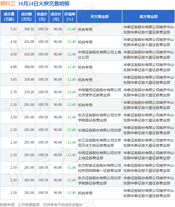 证券之星消息,10月24日德科立发生大宗交易,交易数据如下: