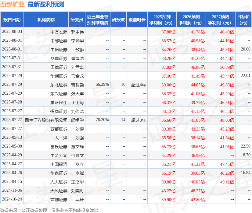 民生证券股份有限公司邱祖学,袁浩近期对西部矿业进行研究并发布了研究报告《2025年三季报点评:业绩稳健,资源储备取得重大突破》,给予西部矿业买入评级。