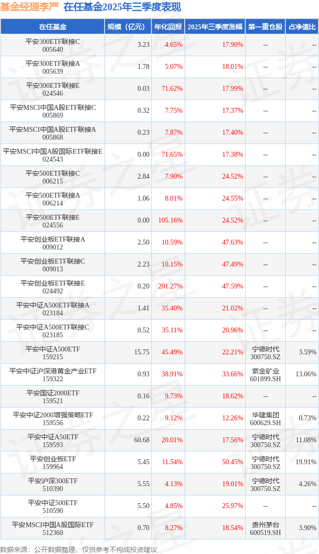 证券之星消息,日前平安创业板ETF基金公布三季报,2025年三季度最新规模5.45亿元,季度净值涨幅为50.45%。