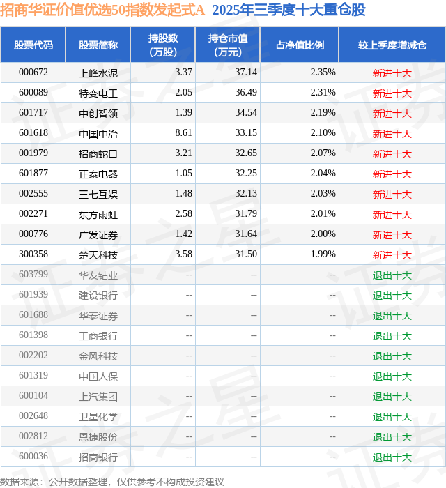 招商华证价值优选50指数发起式A的前十大重仓股如下: