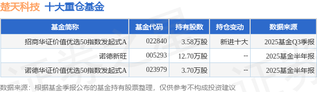 重仓楚天科技的公募基金请见下表: