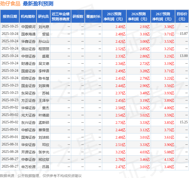 华安证券股份有限公司邓欣,郑少轩近期对劲仔食品进行研究并发布了研究报告《劲仔食品25Q3点评:费投见效,静待新品发力》,给予劲仔食品买入评级。