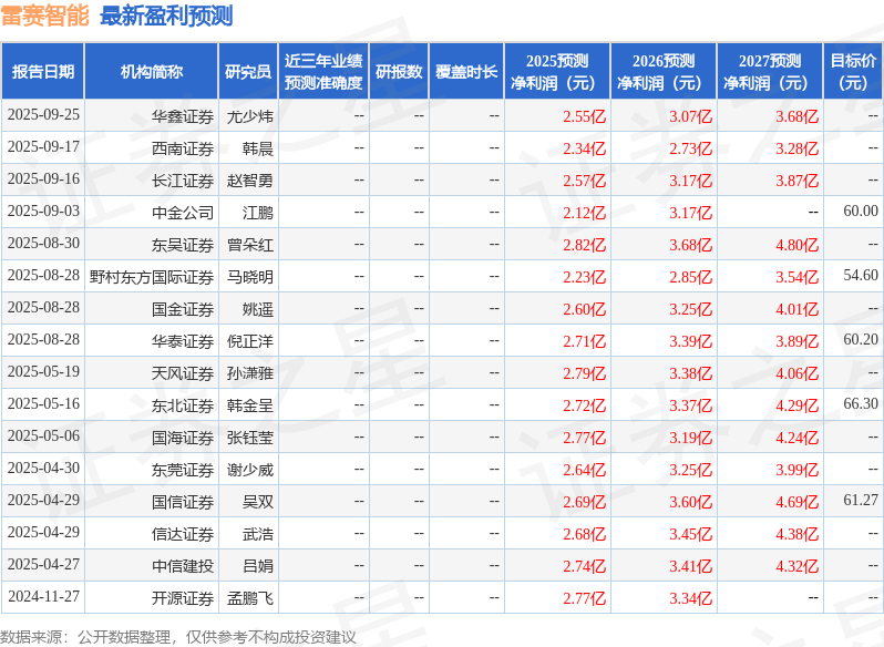 最新盈利预测明细如下: