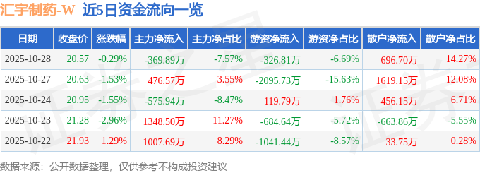 证券之星消息,截至2025年10月28日收盘,汇宇制药(688553)报收于20.57元,下跌0.29%,换手率0.69%,成交量2.37万手,成交额4883.96万元。