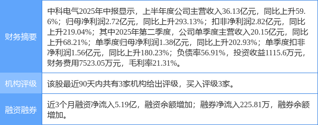2025年8月31日,民生证券研究员邓永康,席子屹,李孝鹏发布了对中科电气的研报《2025年半年报点评:业绩符合预期,产能布局加速海外拓展》,该研报对中科电气给出“买入”评级。研报中预计公司2025-2027年实现营收78.34、107.59、135.35亿元,同比增速分别为40.4%、37.3%、25.8%,归母净利润6.61、10.07、13.91亿元,同比增速分别为118.3%、52.3%、38%,对应PE为22、14、10倍,考虑到公司盈利能力持续修复,石墨化自供率持续提升,维持“推荐”评级。证券之星数据中心根据近三年发布的研报数据计算,该研报作者对此股的盈利预测准确度为38.83%。