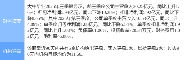 2025年9月3日,民生证券研究员邱祖学,范钧发布了对大中矿业的研报《2025年半年报点评:铁矿下跌拖累业绩,锂矿项目加速建设》,该研报对大中矿业给出“买入”评级。研报中预计公司2025-27年将分别实现归母净利润8.26/8.99/11.43亿元,对应现价,PE分别为22、20和16倍,维持“推荐”评级。证券之星数据中心根据近三年发布的研报数据计算,该研报作者对此股的盈利预测准确度为48.19%。