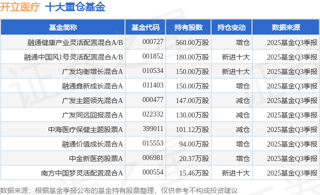 重仓开立医疗的前十大公募基金请见下表: