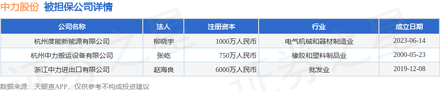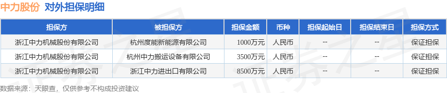 中力股份10月29日披露3笔对外担保,被担保公司3家。对外担保明细如下表:
