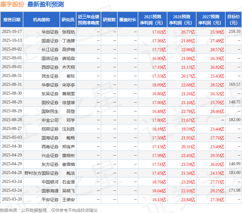 最新盈利预测明细如下: