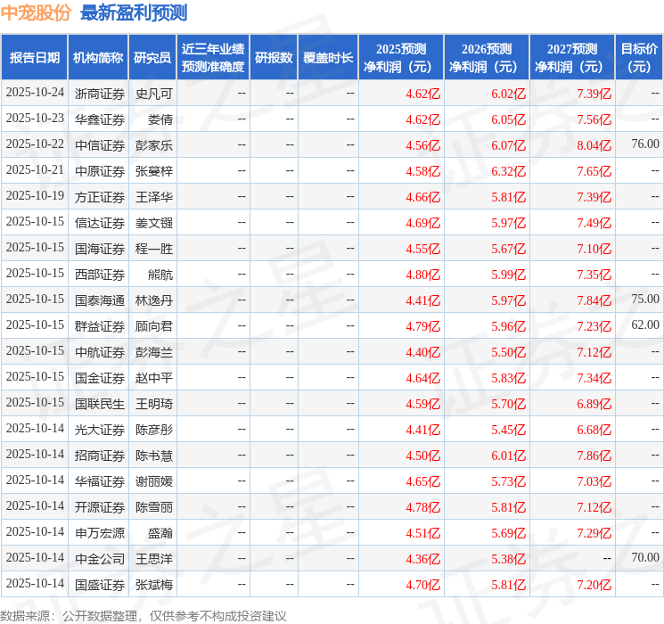 最新盈利预测明细如下: