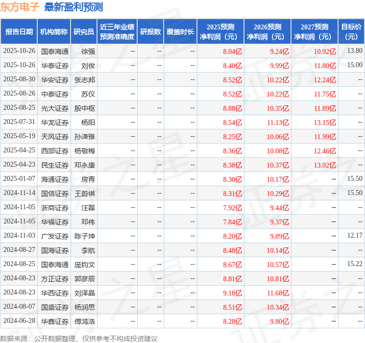 最新盈利预测明细如下: