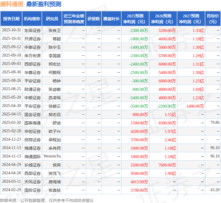 最新盈利预测明细如下: